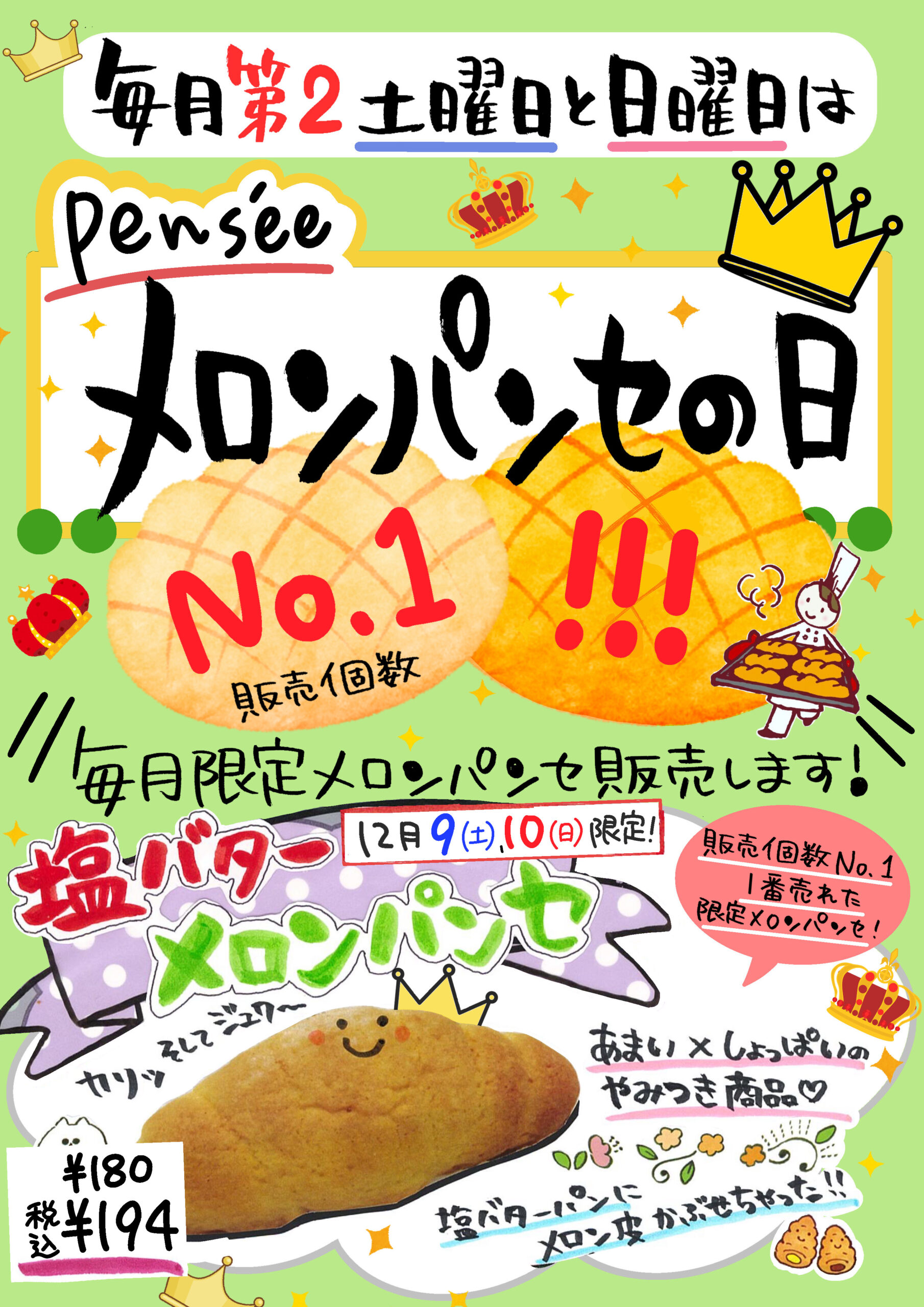 メロンパンセの日【12月は塩バターメロンパンセを販売!】