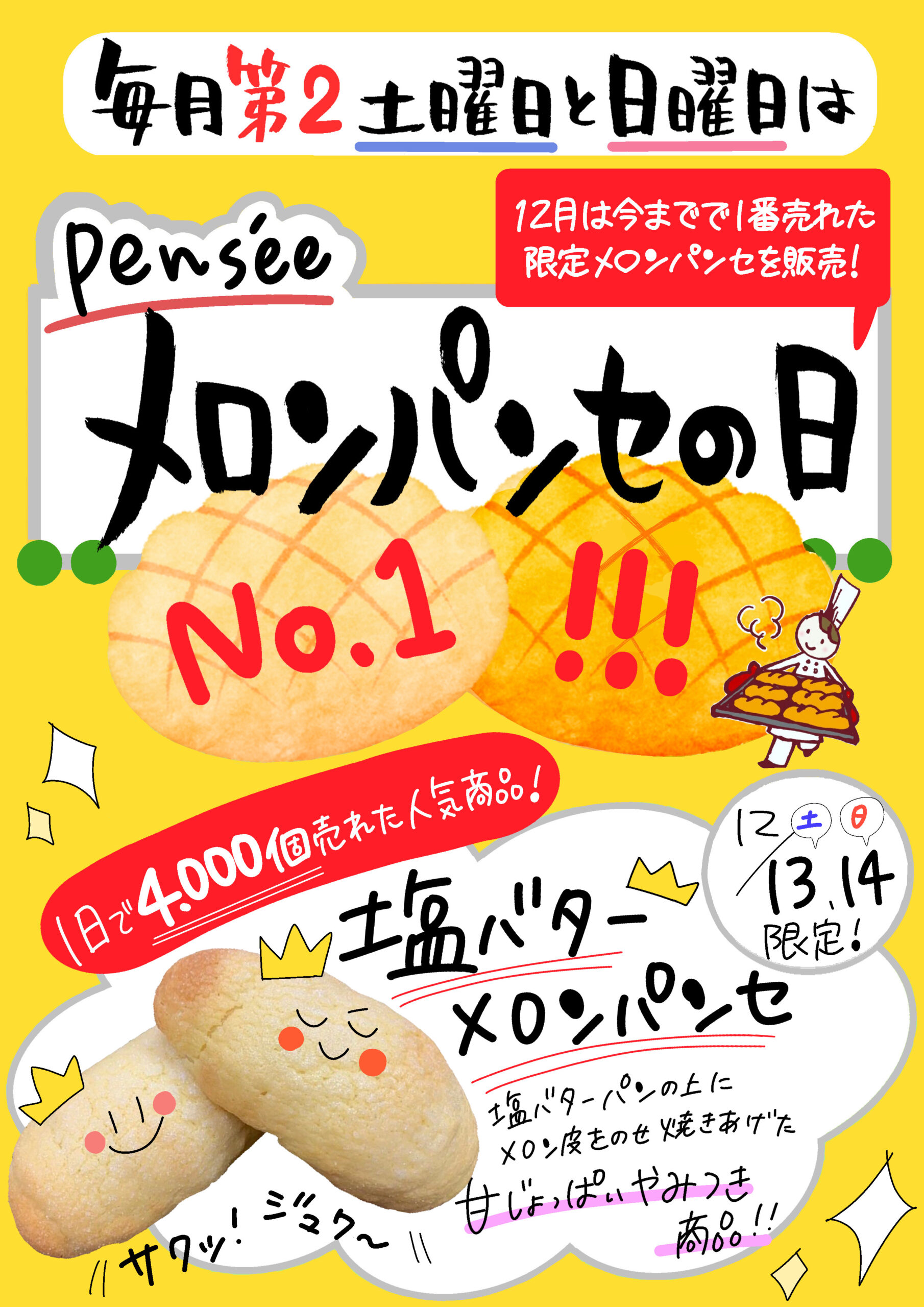 メロンパンセの日【12月は塩バターメロンパンセを販売!】